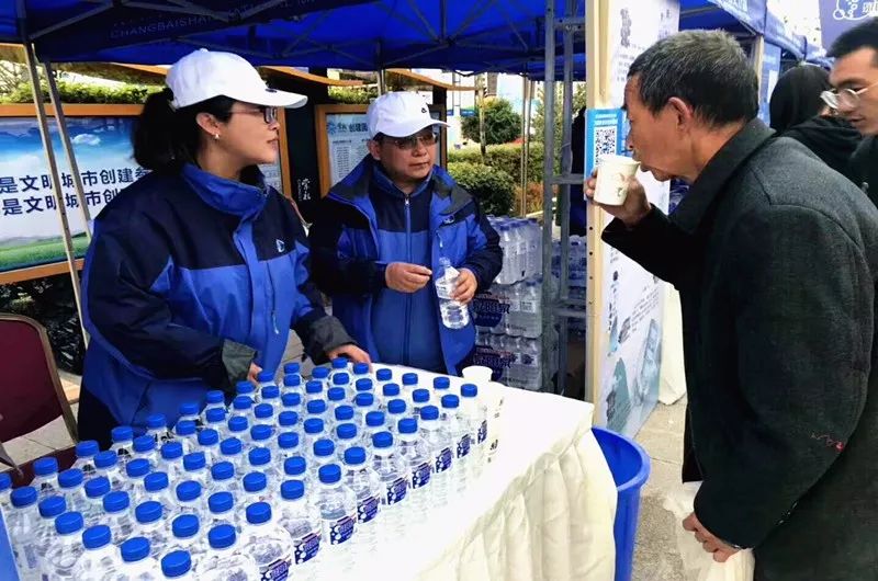 ?? “請各位選手領取補給用水!”,在整齊排列的帳篷前,志愿者熱情的為選手分發補給用水,讓剛剛結束賽事的馬拉松選手,在疲憊之余,感受來自長白山的天然味道。